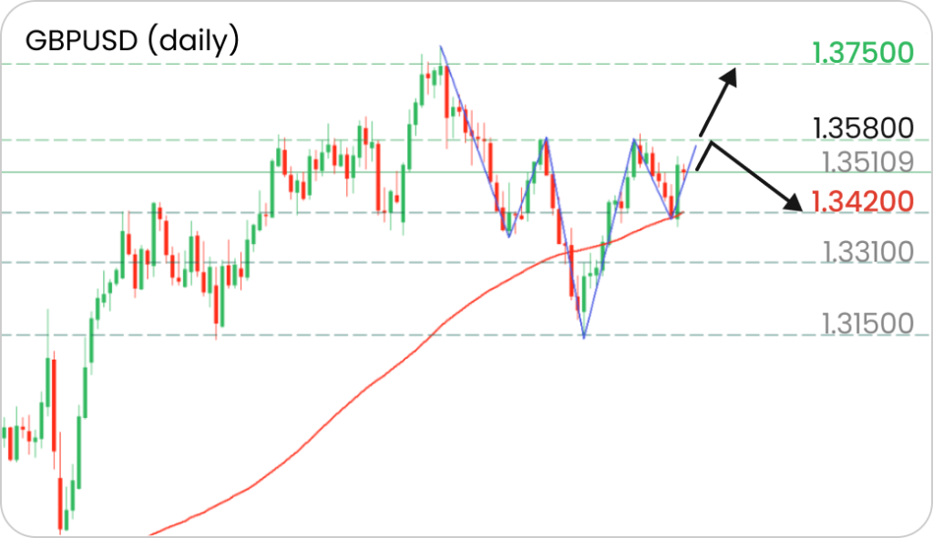 However, GBPUSD will return to the 1.3420 support if the retest fails.