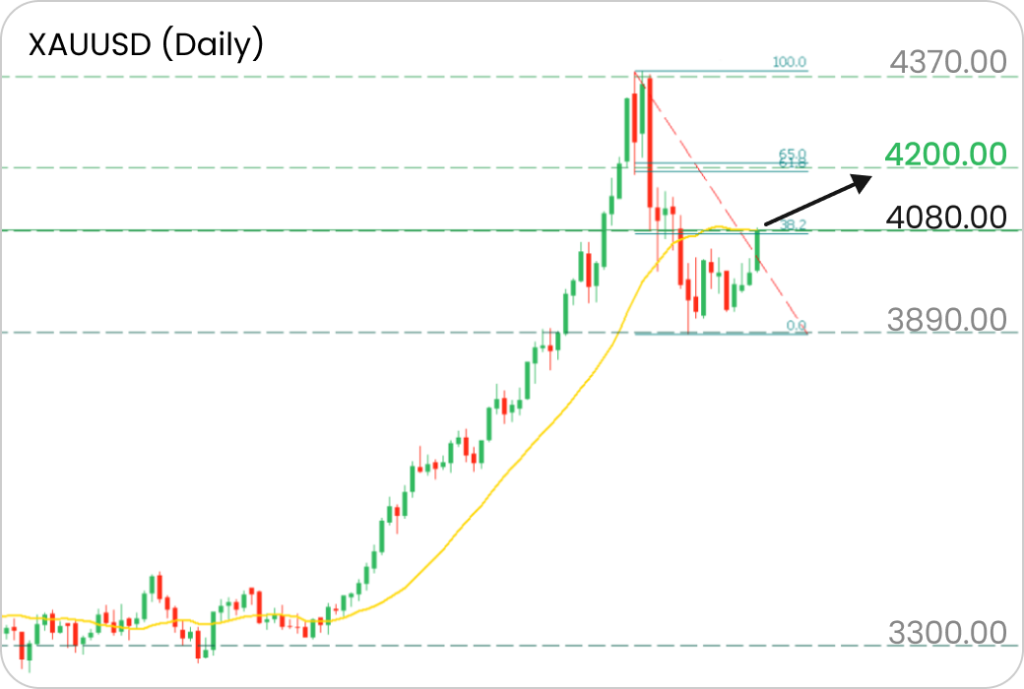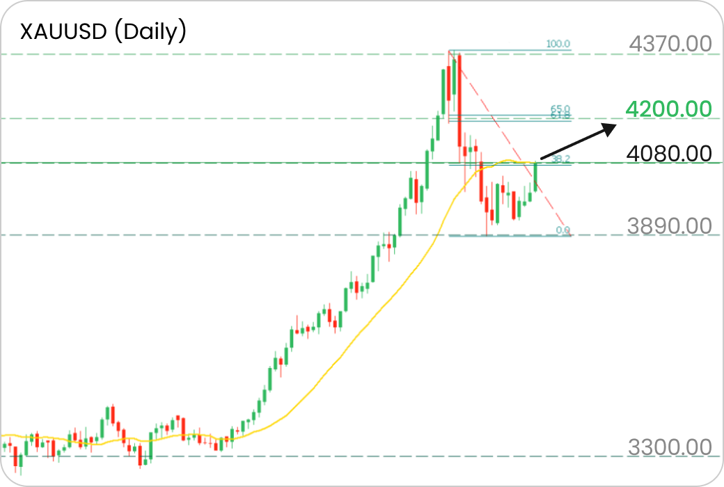 Consider buying XAUUSD on a breakout above 4080 with a target of 4200.