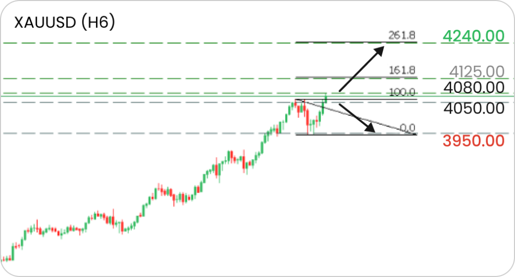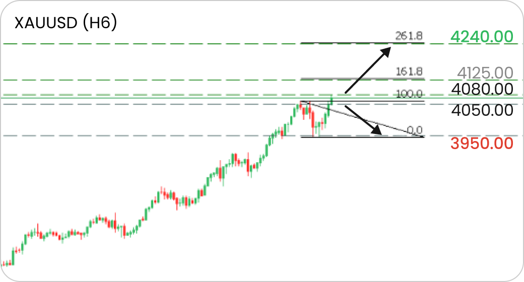 If the price fails to break above 4080 and falls below 4050, a pullback toward 3950 is likely.
