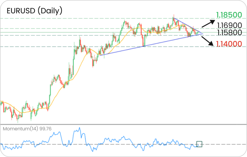 The ECB press conference is expected to confirm that interest rates will likely remain unchanged, with eurozone inflation stabilizing near the 2% target. We recommend listening closely to ECB comments — any hint of concern about persistent inflation or wage growth could boost the euro and lift the EURUSD pair.