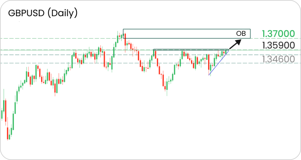 If the price breaks above 1.3590, it may increase toward 1.3700 resistance.